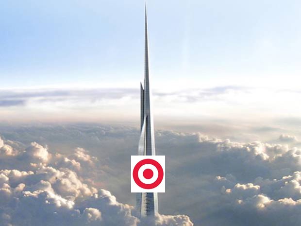 This will give you some idea of the scale. A year ago I went on on a junket to Dubai (a panel to discuss the development of a proposed a new urban quarter). The opening night cocktail party was held at the top of the Burj Khalifa. I took a cab to the base of the damn thing, looked up at the top, and almost blew chunks. Well, I guess some people enjoy being trapped 2500 feet up in the air. Considering the hostilities currently ramping up in that part of the world, I have just one design suggestion to make (below) that might make explicit the true destiny of the Kingdom Tower. After all, that is a technique pioneered by Saudis.