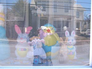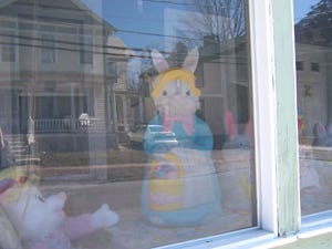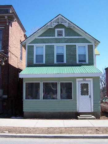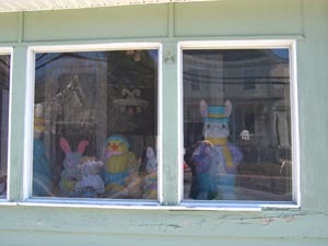I pass this little house on one of my dogwalking routes. From across the street it appears to be an ordinary harmless 19th century vernacular cottage cobbed over with some sad 20th century handyman special add-ons. But check out the display inside the porch -- and scroll down for the full panorama. I have to ask myself: does this make the world a better place?
