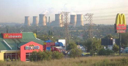 Thanks to Paul Gregory for sending this snap of the vista outside Johannesburg, South Africa, where I visited in March. For a change, there is little more to add to what this picture says about that galoomphing Moloch, the turbo-corporate economic model that became the norm for "advanced" nations. All you really need to know from this picture is, "...this way leads death...."