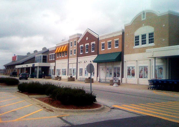 No foolin'? Yes, foolin. This new Meijer Big Box store in Aurora, Illinois, is all tricked out like Main Street, USA -- well, actually a cartoon of Main Street. Why? Because we have become a cartoon nation of cartoon people who are only worthy of cartoon surroundings. American life has no dimension, and that's just fine with us. By the way, this is not an example of the New Urbanism. This is merely the new schlock. Kunstler predicts that this development will have a shelf-life of under ten years as the entire Happy Motoring / Chain Store / Trucking / Consumer nexus whirls around the drain of the post-oil singularity, and we discover the hard way that neither bio-fuels nor electric cars will save it. Below is the interior of the magic box behind the fake shopfronts. Thanks to Tim Moyer for the tip!
