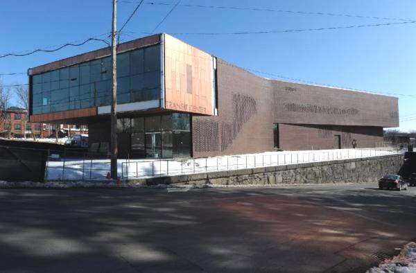 Presenting the new Regional Transportation Center in Greenfield, Massachusetts, another humdinger from the anti-urban bureaucratic goodie-bag, clocking in at $13 million. By the way, do they mean "bus station?" I suppose they dare not speak those words since, in our culture, buses are for losers. Yet, the building expresses that idea perfectly. "Losers board here!" In fact, the style of architecture might be called Loser Attraction Box Moderne. Note the awkward massed form, the pointless change-of-material cladding gimmick, and the horrifying blank wall with its offensive texturing decoration.