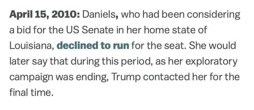 In December 2018, Stormy lost a defamation suit against President Trump filed by Mr. Avenatti, and was ordered to pay over $300,000 to Mr. Trump. Five years later, an appeals court ordered her to pay an additional $122,000 to Mr. Trump to cover his legal fees. By then, Michael Avenatti, her lawyer, was in jail in California for embezzling client funds. Various letters had emerged allegedly signed by Stormy stating that she hadn’t engaged in sex with Mr. Trump, along with Facebook conversations on her account saying the same thing.