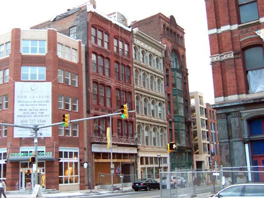 Shown below is a renovated block in the Howard Street district of Baltimore, where I went two weeks ago. That city is making a startling comeback, and mostly at a scale that has a future -- the non-skyscraper, non-megastructure scale. Below you see a good mix of renovation and new construction. The architecture of the older buildings is obviously superior, illustrating the fact that we have a way to go before catching up to levels of excellence that were normal one hundred years ago. Perhaps the best thing about what is happening in Baltimore right now is that so many districts are coming back they are beginning to knit together back into a cohesive whole. The wonderful Revolutionary War-era neighborhood called Fells Point is connecting with Harbor East and that with the Inner Harbor, and that with improving parts of downtown so there is a sense of real continuity. The current situation in Baltimore also illustrates my pet theory that US cities will re-densify at their centers and waterfronts even as they contract overall in size and population. the result will be a different kind of city than the 20th century megacolossus, but not necessarily an inferior one.