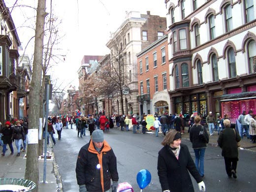 Circumstances took me to Troy, New York, Sunday, Dec. 4, when they were putting on their annual Victorian Stroll. Troy is an old Hudson River city of about 50,000 people (down from 96,000 in 1910) halfway between New York and the Canadian border. The late 20th century bypassed it so completely that it evaded the kind of false urban renewal that left so many other towns wrecked. The core blocks above the riverfront are marvelously preserved, and becoming repopulated. Trade is returning to the shopfronts. Troy is exactly the right scale for the kind of city America will need in this century. It will benefit hugely from a restoration of both river and rail transport.