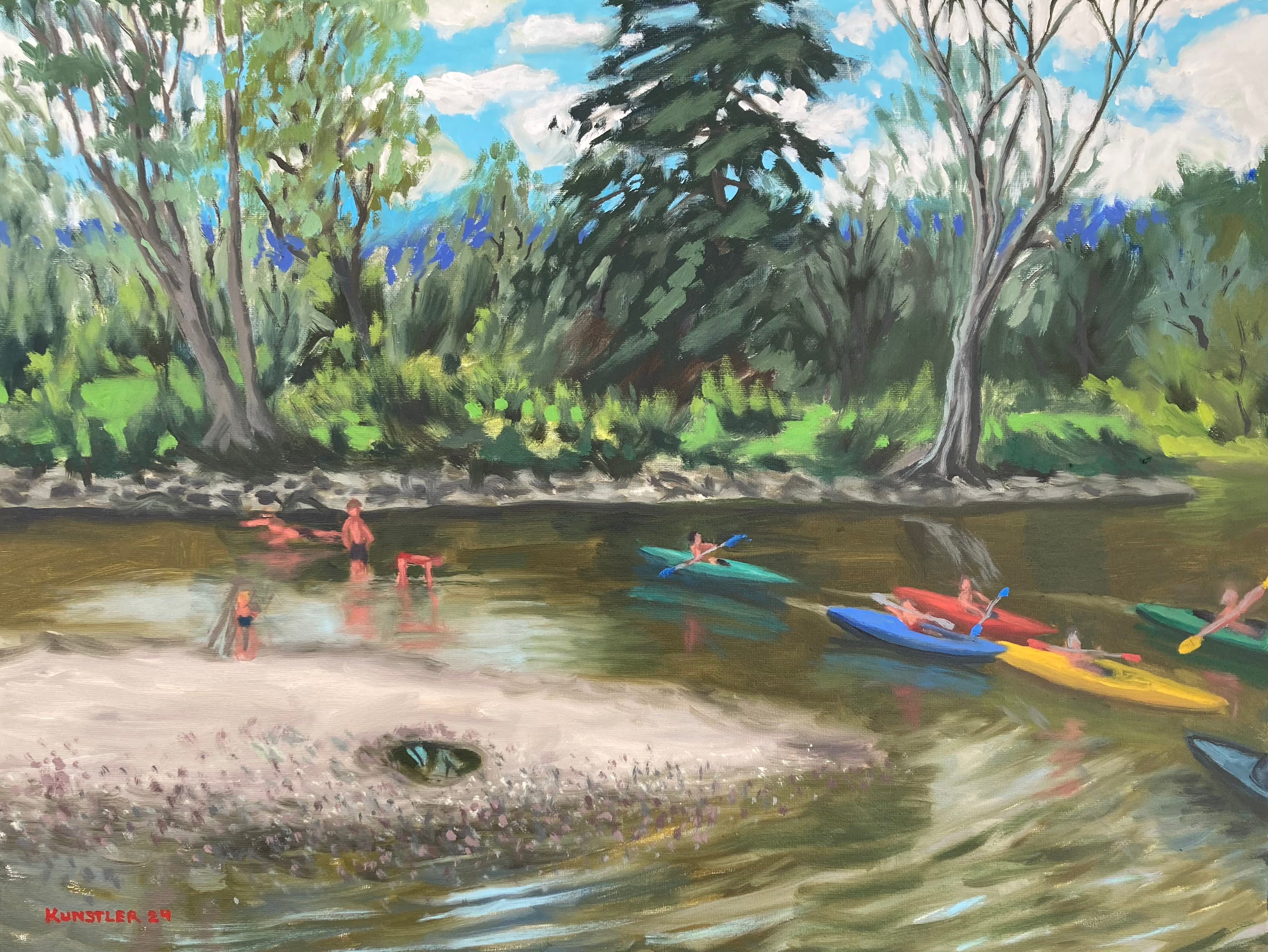 Bathers and Kayakers on the Battenkill, Shushan, New York