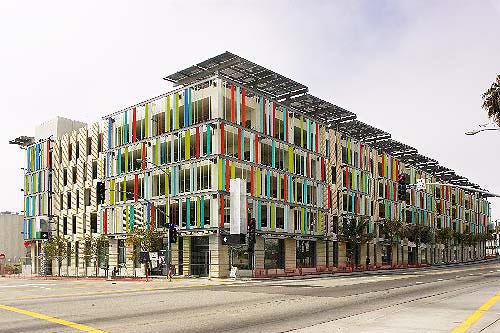The $29 million structure -- which sits near the entrance and exit ramps at the end of the 10 Freeway -- also features ground-floor retail, art works on every floor and sweeping city and ocean views.