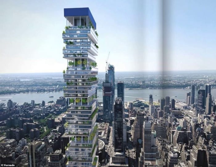 Behold, the stupid fucking idea du jour! The Penn15 Tower proposed for mid-Manhattan — as if the city needs another megastructure that will be transformed from an asset to a liability overnight in the long emergency ahead. Penn15 will be nearly the same height as the Empire State Building.