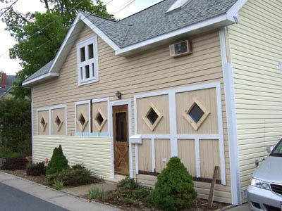 The sad mutilation of an old barn on an alley in Saratoga Springs, NY. The owner is coccooning the old building in vinyl, erasing the fine detail. We have a design review commission in town which mercilously interferes in proposed new construction -- often preventing good things from getting built -- but they turn a blind eye to desecrations like this one on existing buildings.