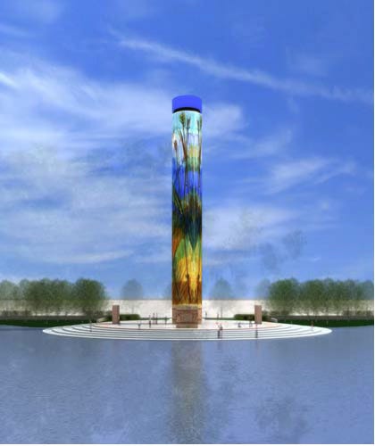 "Located in the Silos and Smokestacks National Heritage Area, the Paragon Prairie Tower was designed to represent the Midwestern work ethic of saving and harnessing our abundant natural resources. It will combine state-of-the- art technology with old world materials and craftsmanship. A colorful shimmering scene will be created on top of panels of pre-cast concrete using hundreds of thousands of individual fragments of glass. The glass mosaic will depict the Iowa prairie with a field of wildflowers, including Coneflowers, Black-Eyed Susans, Daisies and Clover amidst bluestem grass. When complete, the scene on Paragon Prairie Tower will be approximately 5,000 square feet, which to date will be the largest known mosaic glass tile mural in the U.S."