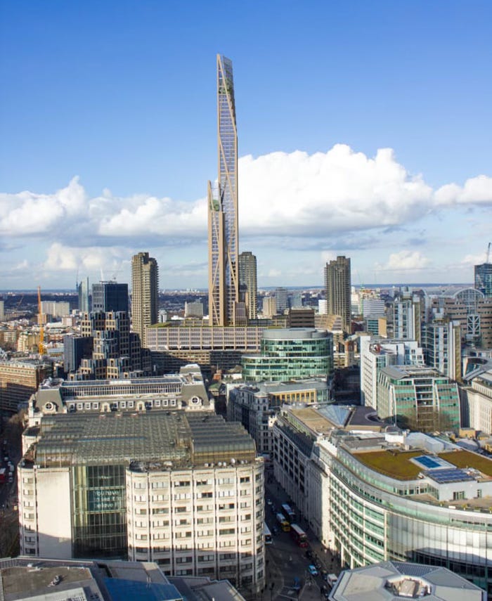 Below: rendering of 80-story Oakwood Tower, London — as yet unbuilt.