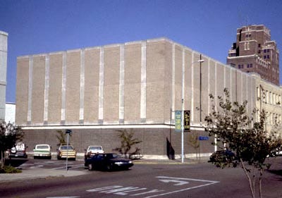 Remember, buildings like this department store in Meridian, Mississippi, were designed and built by people who were AGAINST hallucinogenic drugs. Note how the colorful banners on the pole in front really "dress it up."