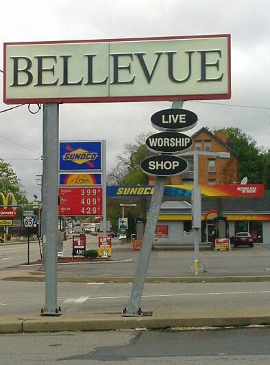 This street could not be more normal across America. It is Ohio River Blvd, Bellevue, PA. There are many ways of understanding the failures of urban form in the USA, but the salient condition of these places always has one overarching feature:lack of decorum. It makes us a nation of clowns dwelling in a clown habitat. There are consequences. Note: nobody wants to be here outside of a car.