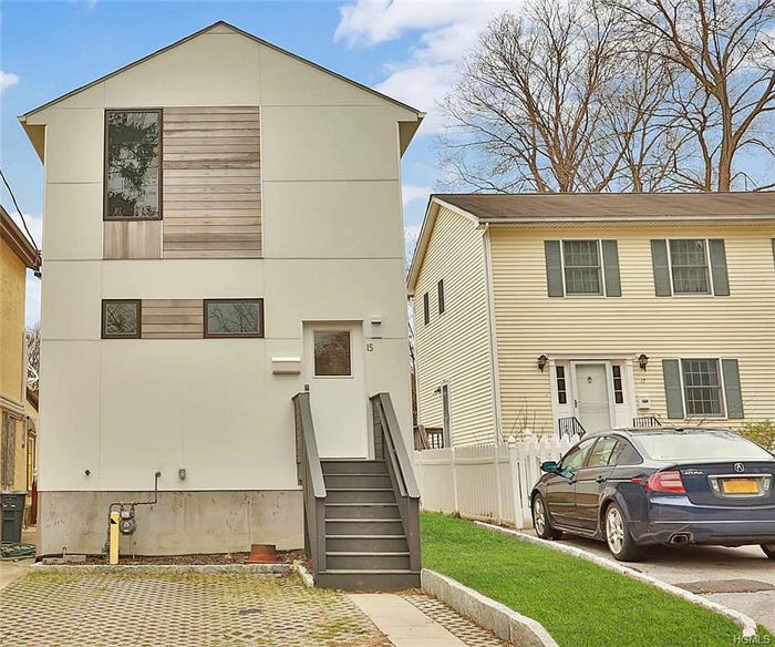 The real estate website Zillow sez: “this contemporary home has a European flare with a Manhattan feel. Perfect for entertaining….” Actually, I’d say it has a Soviet flare with a recycling bin feel, perfect for opening a large vein in a warm tub. It’s in a Hudson Valley suburb of New York City. Lists for $499,000. Of course, a major campaign of the Modernists’ 100-YearWar on Sensibility is its determination to shit-can all design gestures that might convey charm or grace-notes in our built world. Here, they have succeeded maximally. Épater les bourgeois is still the password to glory among the revolutionary Puritans who rule architecture, and especially in the universities where they train recruits to the cause. Who can’t love that darling gas meter on the street-side elevation — with its cunning little yellow protective bollard! By the way, the house on the right is equally awful, but accomplishes it differently: reducing all the traditional exterior decor — fence, shutters, carriage lamps — to cheap cartoons. Go ahead and weep for America, a country that no longer has any idea how to get it right. Thanks to JS White for the nomination.