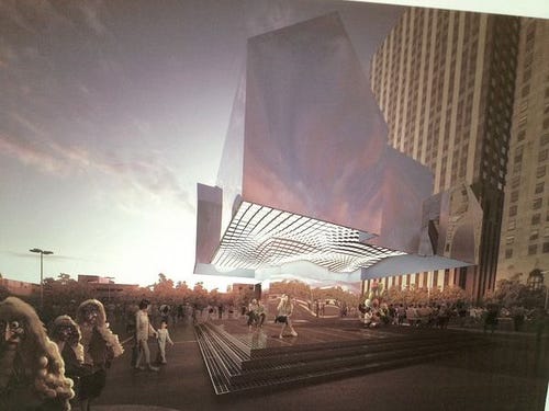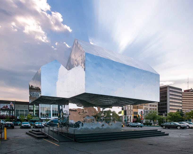 Behold the conceptual rendering for this year’s official Flint, Michigan, public art project. Titled Mark’s House, this exercise in techno-narcissistic stunt-craft was the winner of a $25,000 competition prize administered by the Flint chapter of the American Institute of Architects. The winners were a London, UK, team calling itself Two Islands.