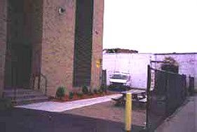 Welcome to the employee's lounge at the Verizon Company's downtown Saratoga switching station. Actually, the fence is merely decorative. Anybody can sit here and wolf down a bag of Hostess Ho-Hos with a Yoo-Hoo or two. We really like the brick mulch and juniper shrub ensemble in front of the giant cooling system vents. Table for one? We'll be with you in a moment, ma'am.