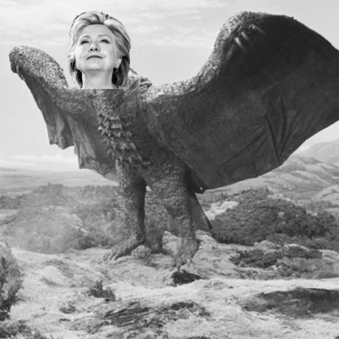 But then there’s always HRC. She’s been laying back alertly, waiting for an opening to swoop in on her leathery wings and cast a fresh spell over the batshit-crazy women who, in recent times, comprise the party’s base. At one point, not many years ago, the party was broke and had to be bailed-out by the Clinton Foundation. To what extent does that entity still own the DNC, and especially its cargo of super-delegates? I guess we’re going to find out.