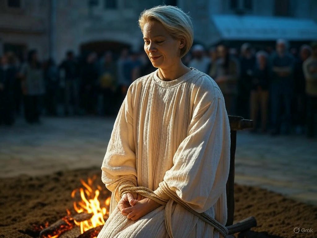 Meanwhile Ursula von der Leyen rehearses her part as the wannabe Joan of Arc in this political psychodrama. Her sweet grandmother’s face will smile placidly as the flames tickle her penitent’s robe. She was born for this. A million deracinated Congolese perform the twerk mazurka around her flaming pyre while the muezzins sing out the call to prayer from every minaret around Brussels. Her Hanoverian ancestors weep for Ursula through the mists of the centuries. Was Satan himself behind the contract she signed with Pfizer for as much as 4.6 billion doses of Covid-19 vaccine at a cost of €71-billion? Where did the money come from and where exactly did it go, and what did Ursula finally have to show for it? The European Court of Auditors had a look at this tangled web and blew their lunches all over the rue Alcide De Gasperi in Luxembourg City. Snails, champignon, and shards of puff pastry on the ancient stone steps. A disgrace.