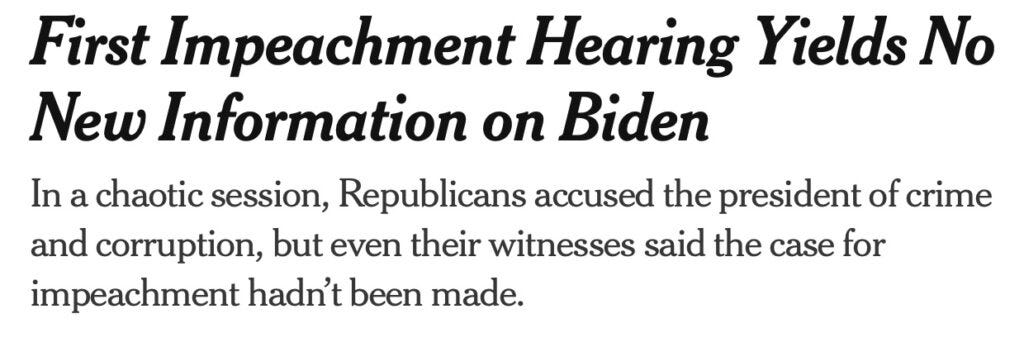 The New York Times pushed the leitmotif of their narrative this morning: there’s no evidence that “Joe Biden” committed any impeachable offenses.