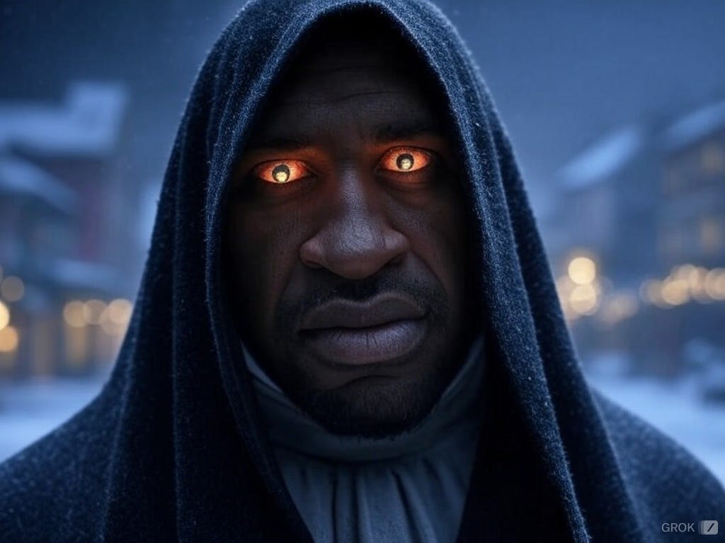 “Not him, either, sucker. It’s me: George Floyd! I am the ghost of Christmas Future! Come with me!”