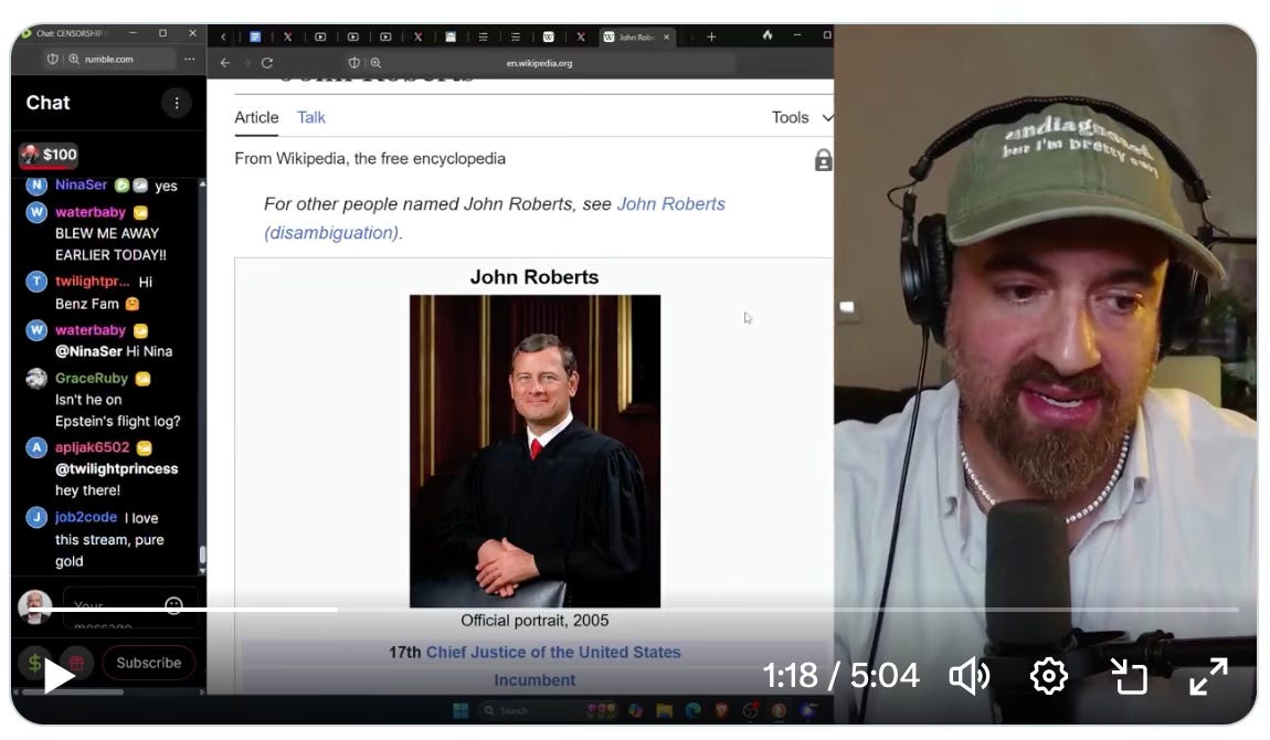 Of course, no flight log would be required for a jaunt to Epstein’s New York City townhouse, in case CJ Roberts ever ventured up there from our nation’s capital, an easy car trip. It is established fact that Epstein was busy recording the various doings in the many bedrooms of these establishments, arguably not merely for his private entertainment. Is CJ Roberts perhaps under blackmail for any such activity recorded? Lord only knows, just now.